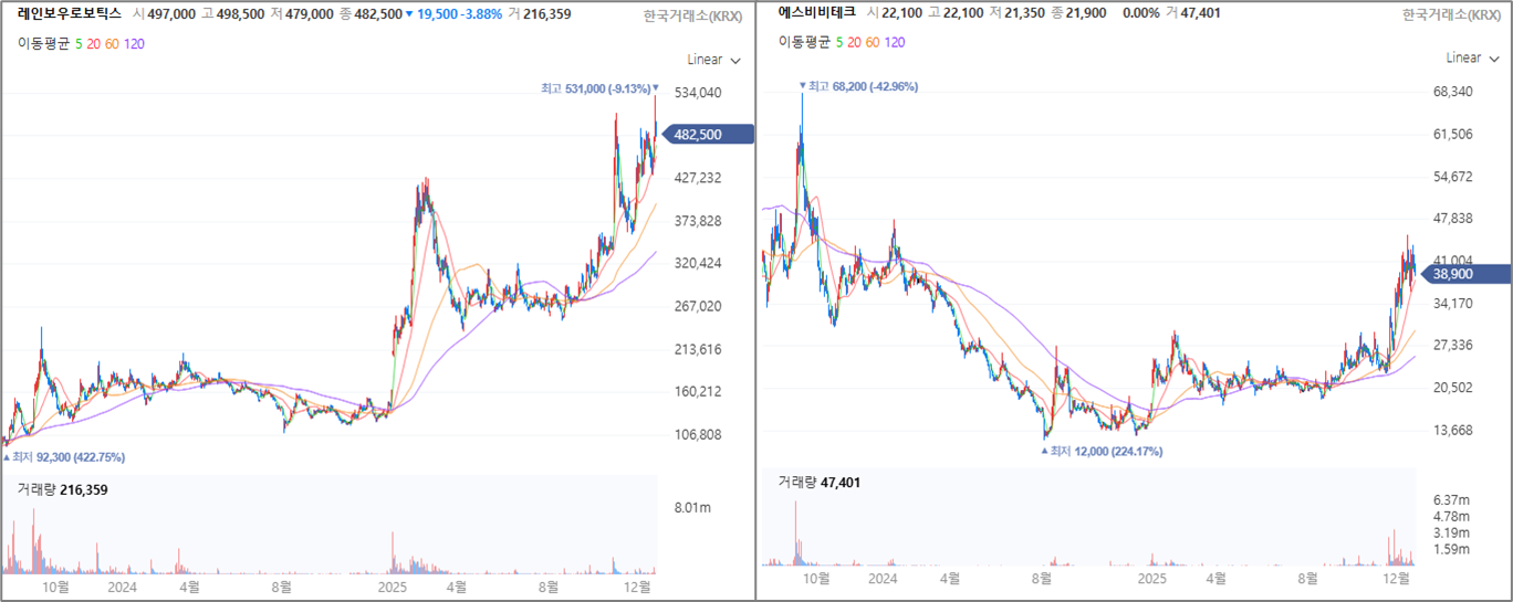 - 부품주 (SPG, SBB테크 등): 미·중 갈등으로 중국산 부품 배제 움직임이 커지면서, 정밀 감속기와 액추에이터를 국산화한 국내 소부장 기업들의 수혜가 예상됩니다.