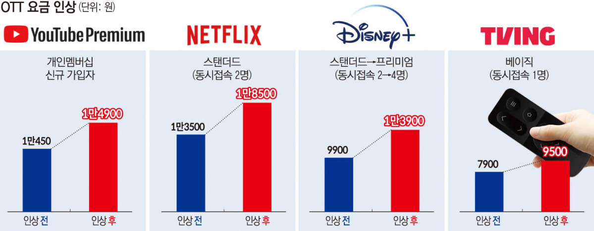 | 넷플릭스 | 13,500원 | 18,500원 | 계정 공유 금지 강화 |