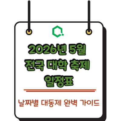 2026년의 5월 축제는 단순한 즐거움을 넘어 우리에게 새로운 활력을 불어넣어 줄 것입니다. 오늘 정리해 드린 일정표가 여러분의 뜨거운 청춘을 기록하는 데 도움이 되었기를 바랍니다. 궁금한 대학의 세부 라인업이 있다면 언제든 댓글로 남겨주세요! 즐거운 대동제 되시길 바랍니다. 😊
