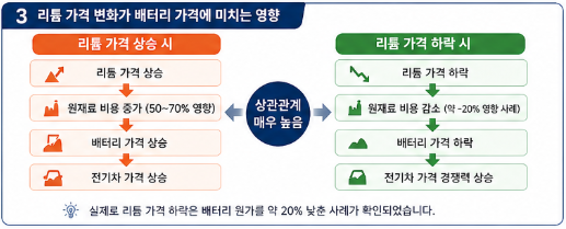| 리튬 가격 | 급락 및 변동성 심화 | 바닥 확인 후 박스권 안착 | 원가 예측 가능성 증대 |